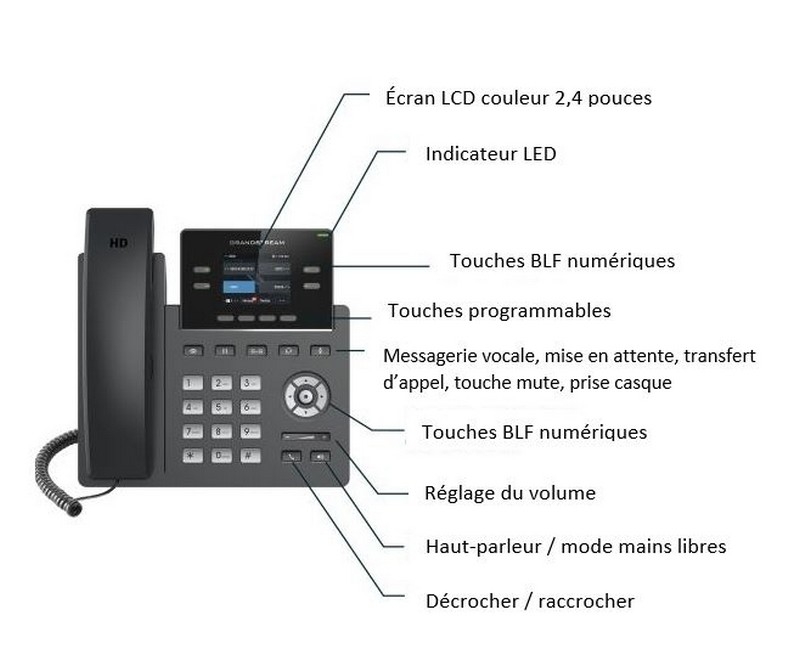 Téléphone IP Multifonction avec écran LCD, son HD et 2 comptes SIP paramétrables